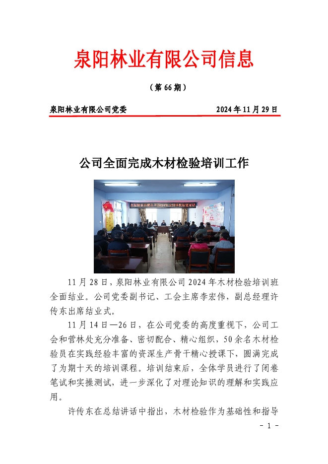 泉陽(yáng)林業(yè)有限公司信息2024年第66期